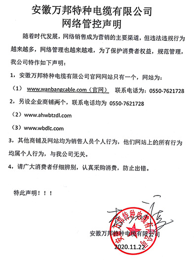 鄭重聲明:安徽萬邦特種電纜有限公司官方網站為:www_wanbangcable_com.eqpjpll.cn,除此之外無任何子網站或合作網站,其余均為假冒偽劣。電話:0550-7621728 13485756353 地 址:安徽省天長市滁州高新技術產業開發區經四路29號